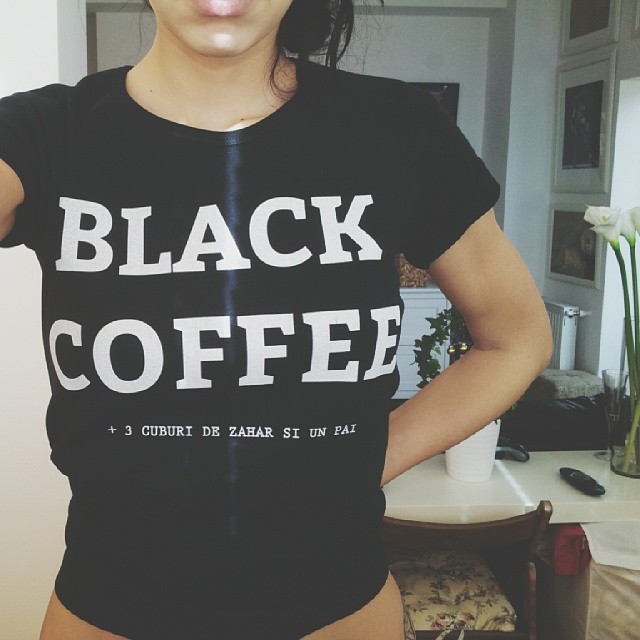 I love your t-shirt with ”black coffee” <3! Decidecideci. Tu și Sânziiiiiii îmi sunteți modele <3.