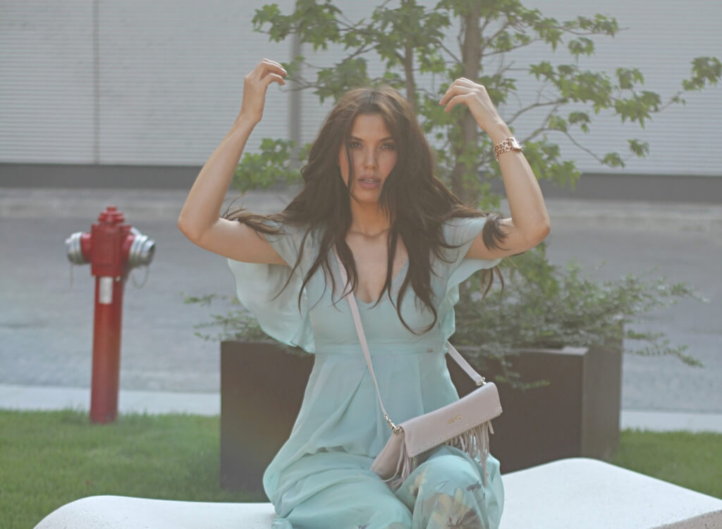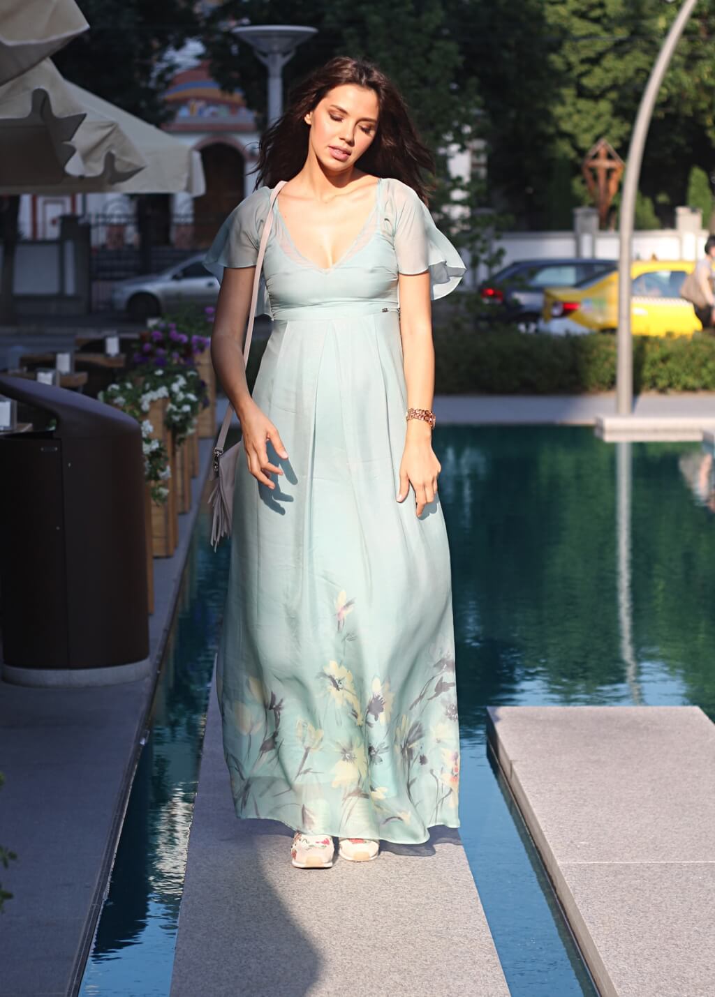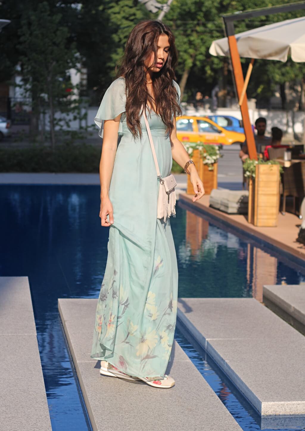 Pentru un strop de edginess am combinat rochia cu pantofi sport si geanta crossbody. E clar ca puteti sa o purtati cu sandale cu toc sau fara, nude basic si puteti renunta la bareta gentii pentru un look elegant de seara.